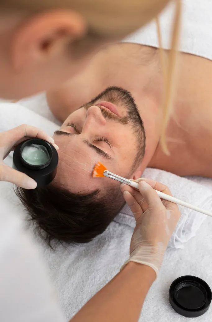 Wykorzystanie węgla aktywnego lub kwasu migdałowego, które usuwają zanieczyszczenia bez naruszania bariery ochronnej męskiej skóry (która jest grubsza niż kobieca).